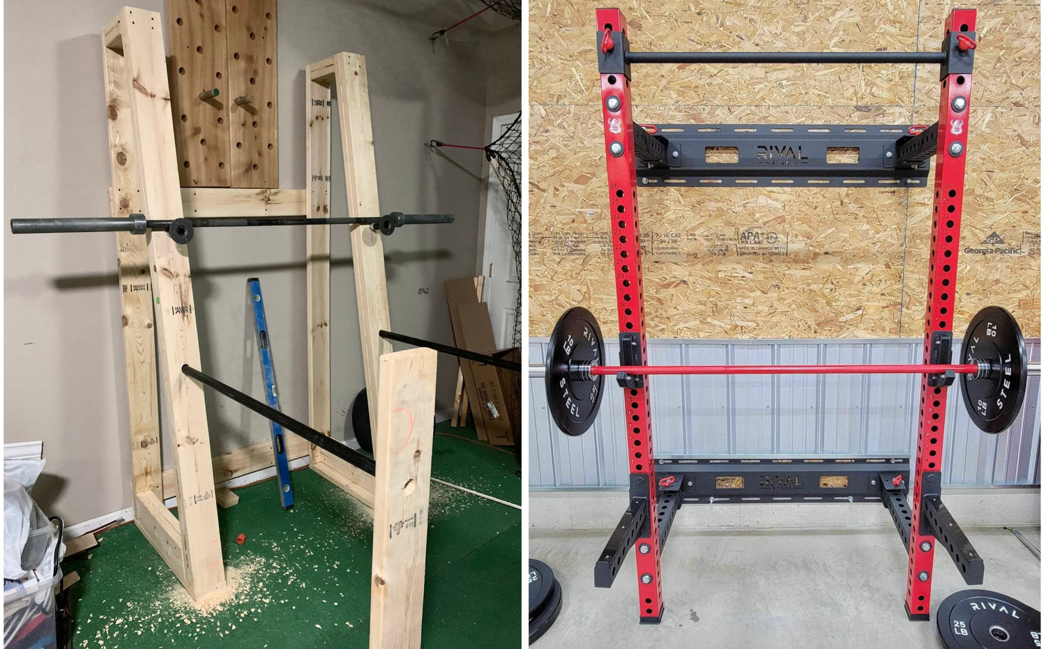 We know weightlifting equipment is not only expensive, but it’s hard to come by. During Covid, My dad and I spent thousands in attempt to create our own home gym setup, and shopped for months with little to no luck, that's when we decided to create our own ultimate RIVAL STEEL Home Gym Packages! Our RIVAL STEEL Home Gym Packages are pound-for-pound the most affordable, durable, and functional home gym setups on the market. (Inspired by our first wall-mounted squat rack, I guess you can say that we upgraded!)