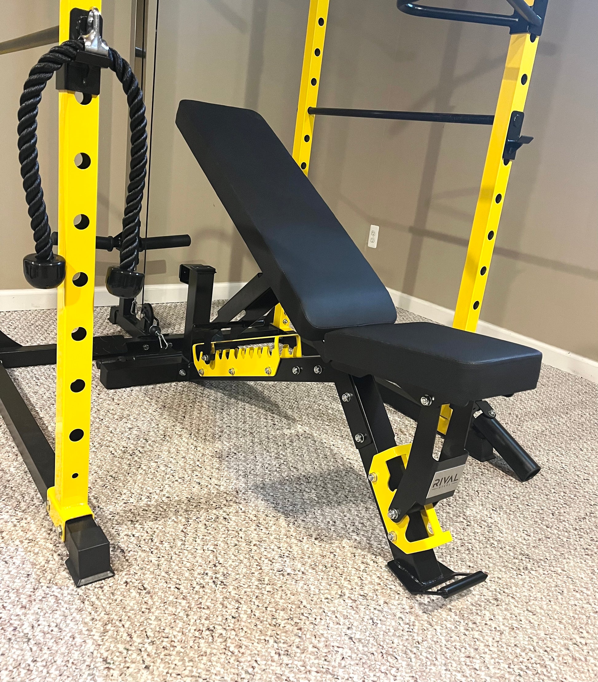 In addition, all RIVAL benches are custom-designed and built to fit within any RIVAL power rack!